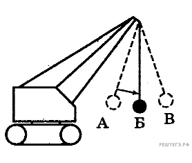 Для разрушения преграды часто используют массивный шар, раскачиваемый на стреле подъемного крана (см. рис.). Какие преобразования энергии происходят при перемещении шара из положения А в положение Б?