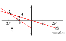 Версия для печати и копирования в MS Word Изображением точки S (см. рис.), даваемым тонкой собирающей линзой с фокусным расстоянием F, является точка