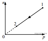 При переводе идеального газа из состояния 1 в состояние 2 концентрация молекул n пропорциональна давлению р (см.  рисунок). Масса газа в процессе остается постоянной. Утверждается, что в данном процессе