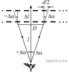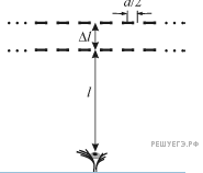 Согласно закону прямолинейного распространения света в однородной среде (воздухе), центры темных полос будут наблюдаться там, где центры штакетин первого забора проецируются на середины промежутков между штакетинами во втором заборе (см. рис.). Это будет наблюдаться в первый раз под углами к нормали, проведенной к первому забору. Поэтому период темных полос на уровне первого забора вблизи к основанию перпендикуляра, проведенного от наблюдателя к забору, будет равен