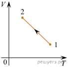 На рисунке показан график зависимости объема V неизменного количества идеального газа от его абсолютной температуры T в процессе 1–2. Определите, как в этом процессе изменяются внутренняя энергия и давление газа.
