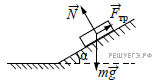 | 1) Fтр + N | 2) N cosα | 3) Fтрsin α | 4) mg |