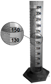 Для проведения опыта ученик налил воду в мензурку. Шкала мензурки проградуирована в миллилитрах (мл). Погрешность измерений объема равна цене деления шкалы мензурки. Чему равен объем налитой учеником воды?