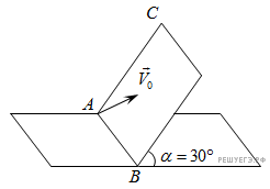 По гладкой наклонной плоскости пускают шайбу. Максимальное удаление шайбы от линии пересечения наклонной плоскости и горизонтали 68 см. Угол плоскости с горизонталью α = 30°. Угол между начальной скоростью и линией AB β = 60°. Найдите начальную скорость шайбы.