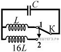 Как изменится период собственных электромагнитных колебаний в контуре (см. рис.), если ключ К перевести из положения 1 в положение 2?