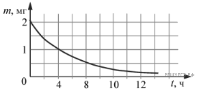 На рисунке показан график изменения массы находящегося в пробирке радиоактивного изотопа с течением времени. Период полураспада этого изотопа