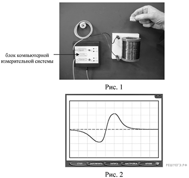 Учитель продемонстрировал опыт по наблюдению напряжения, возникающего в катушке при пролете через нее магнита (рис. 1). Напряжение с катушки поступало в компьютерную измерительную систему и отображалось на мониторе (рис. 2).