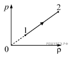 При переходе идеального газа из состояния 1 в состояние 2 давление газа пропорционально его плотности. Масса газа в процессе остается постоянной. Утверждается, что в этом процессе