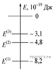 На рисунке указаны три низших значения энергии атома натрия. Атомы находятся в состоянии