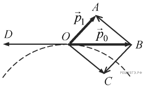 разорвался на два осколка (см. рисунок). Один из осколков имеет импульс