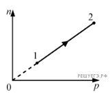 При переводе идеального газа из состояния 1 в состояние 2 концентрация молекул n пропорциональна давлению р (см. рис.). Масса газа в процессе остается неизменной. Утверждается, что в данном процессе