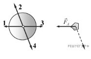 показывает силу притяжения астероида Землей. Вдоль какой стрелки (1, 2, 3 или 4) направлена сила, действующая на Землю со стороны астероида?