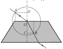На рисунке показан ход светового луча сквозь стеклянную призму, находящуюся в воздухе. Точка О — центр окружности.