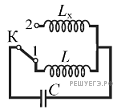 Какой должна быть индуктивность Lx катушки в контуре (см. рисунок), чтобы при переводе ключа К из положения 1 в положение 2 период собственных электромагнитных колебаний в контуре уменьшился в 3 раза?
