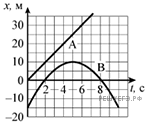 На рисунке приведены графики зависимости координат от времени для двух тел: А и В, движущихся по прямой, вдоль которой и направлена ось Oх. Выберите верное(-е) утверждение(-я) о характере движения тел.
