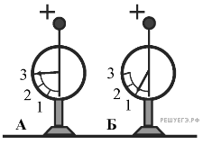 На рисунке изображены два одинаковых электрометра: А и Б, шары которых заряжены положительно. Какими станут показания электрометров, если их шары соединить проволокой?
