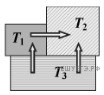 Три металлических бруска привели в соприкосновение, как показано на рисунке. Стрелки указывают направление теплопередачи. Сравните температуры брусков перед их соприкосновением.