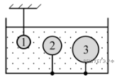 В воде находятся три шарика одинаковой массы, удерживаемые нитями (см. рисунок). При этом