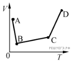 В сосуде находится идеальный газ. Процесс изобарного изменения состояния газа показан на диаграмме (см. рисунок). Масса газа в процессе изменялась. В какой из точек диаграммы масса газа имеет наименьшее значение?
