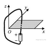 При подключении проводника к полюсам гальванического элемента на поверхности проводника появляются заряды: положительные вблизи положительного полюса, а отрицательные вблизи отрицательного полюса — и возникает электрический ток. Заряды на поверхности проводника создают в пространстве электрическое поле, а ток — магнитное поле. Проводник, подключенный к гальваническому элементу, проходит через отверстие в доске.