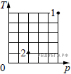 В сосуде находится некоторое количество идеального газа. Как изменится объем газа, если он перейдет из состояния 1 в состояние 2 (см. рис.)?