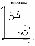 По гладкой горизонтальной плоскости XOY движутся два тела массами m1 и m2 со скоростями V1 и V2 соответственно (см. рис.). В результате соударения тела слипаются и движутся как единое целое. Проекция импульса этой системы тел на ось ОХ после соударения будет
