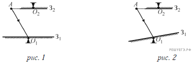 Оптическая система состоит из двух зеркал З1 и З2, способных вращаться вокруг горизонтальных осей, которые проходят через точки O1 и O2 соответственно. Изначально зеркала установлены горизонтально. Из точки A , лежащей в плоскости зеркала З2, на зеркало З1 направлен луч света, идущий в плоскости рисунка. Угол падения луча света на зеркало З1 равен 30° (см. рис. 1).
