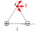Два одинаковых по модулю точечных заряда находятся на расстоянии r друг от друга. На таком же расстоянии r от каждого из зарядов находится точка A. На каком из следующих рисунков изображена система зарядов, для которой вектор напряженности электростатического поля в точке A направлен вправо?