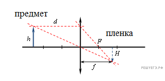 На пленке фотоаппарата получено уменьшенное изображение предмета. На основании этого можно утверждать, что объектив в виде собирающей линзы при фотографировании находился от фотопленки на расстоянии