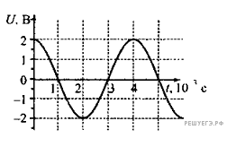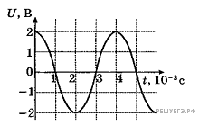 Напряжение между обкладками конденсатора в колебательном контуре меняется с течением времени согласно графику на рисунке. Какое преобразование энергии происходит в контуре в промежутке от