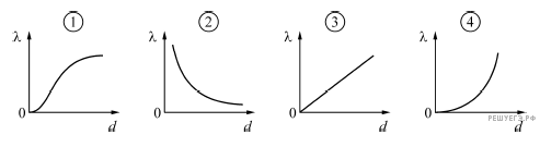 Колебательный контур состоит из конденсатора и катушки индуктивности. В конденсаторе плавно изменяют расстояние между его пластинами. На каком из рисунков правильно изображена зависимость длины волны λ электромагнитных волн, излучаемых этим контуром, от расстояния d между пластинами конденсатора?