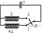 Как изменится период собственных колебаний контура (см. рис.), если ключ К перевести из положения 1 в положение 2?