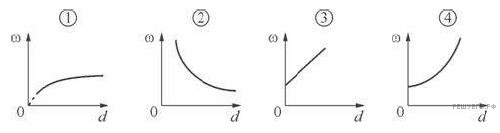 Колебательный контур состоит из воздушного плоского конденсатора и катушки индуктивности. Пластины конденсатора начинают медленно раздвигать. Зависимость частоты электромагнитных колебаний от расстояния d между пластинами конденсатора в этом колебательном контуре правильно показана на рисунке