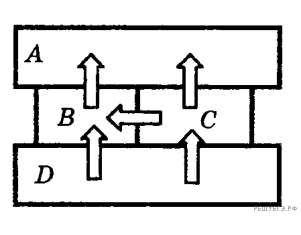 ) привели в соприкосновение. В процессе установления теплового равновесия тепло передавалось в направлениях, указанных на рисунке стрелками. Температуру