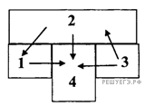 На рисунке изображено четыре бруска. Стрелки показывают направление теплопередачи от одного бруска к другому. Самую высокую температуру имеет брусок