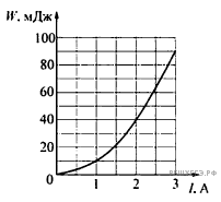 На рисунке показана зависимость энергии W магнитного поля катушки от силы I протекающего через нее тока. Индуктивность этой катушки равна
