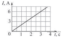 Через катушку течет электрический ток, сила I которого зависит от времени t так, как показано на графике. Индуктивность катушки 10