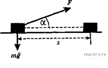 к горизонту, перемещается на расстояние s по прямой на горизонтальной поверхности с коэффициентом трения
