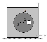 Шар со сферической полостью удерживают полностью погруженным в воде. В какой точке приложена действующая на него сила Архимеда?
