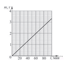 В электролитической ванне происходит покрытие пластинки слоем некоторого вещества. Используя приведенный график зависимости массы m выделяющегося вещества от времени t, определите скорость возрастания массы пластинки.