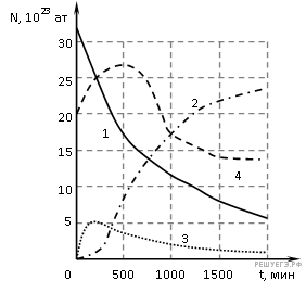 На рисунках приведены графики изменения числа атомов с течением времени в закрытом сосуде.